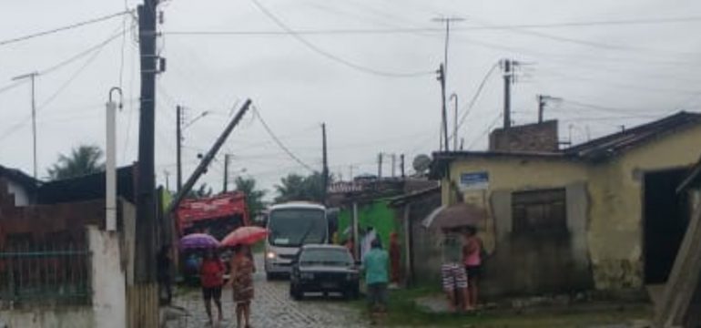 Nesta segunda-feira (01), um caminhão de lixo da empresa TCl bateu em um poste na rua Oito de Dezembro, no bairro Morada da Fé. De acordo com moradores, o bairro está sem energia.