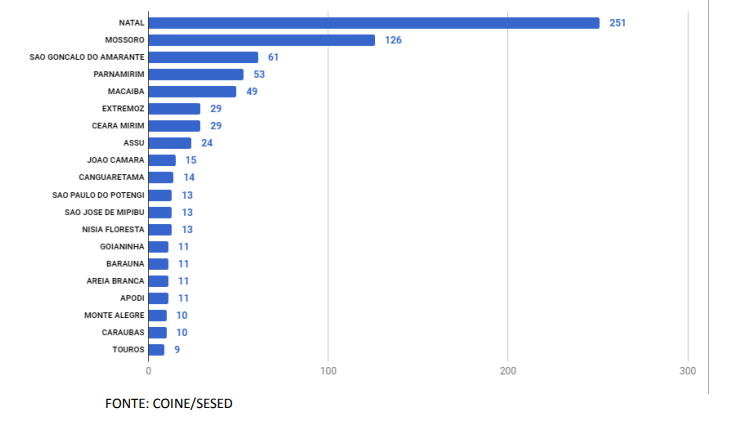 Foi divulgado nesta segunda-feira (09), o relatório estatístico de homicídios no Rio Grande do Norte, no período entre janeiro a junho de 2018. De acordo com informações da Secretaria Estadual da Segurança Pública e da Defesa Social, as principais cidades com alto índice de homicídios estão localizadas na Grande Natal. Somente nas dez cidades com maior registro de assassinatos, seis delas estão localizadas na Grande Natal.