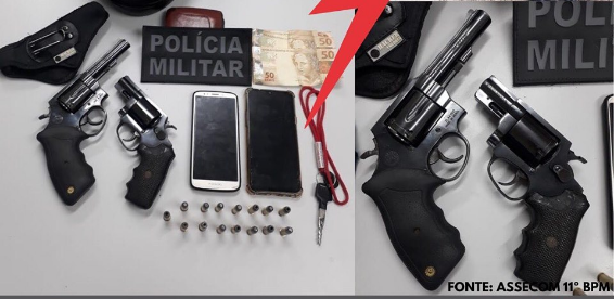 Na manhã desta quarta-feira (29), Policiais Militares da 1a Cia./11º BPM, em patrulhamento na comunidade de Lagoa das Pedras, Macaíba, ao visualizarem dois suspeitos em uma moto, foi dada voz de parada e realizada a abordagem, onde foram localizadas duas armas de fogo, tipo revólver, calibre .38, devidamente municiadas. Os dois suspeitos, as armas de fogo e todo o material foram encaminhados à Delegacia de Macaíba para adoção dos procedimentos cabíveis.