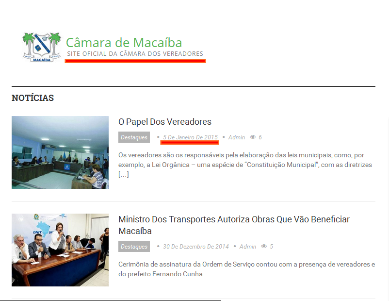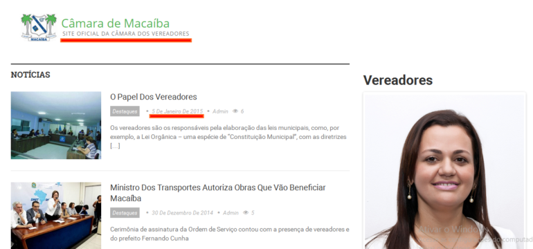 Site da Câmara Municipal de Macaíba está sem atualização há dois anos